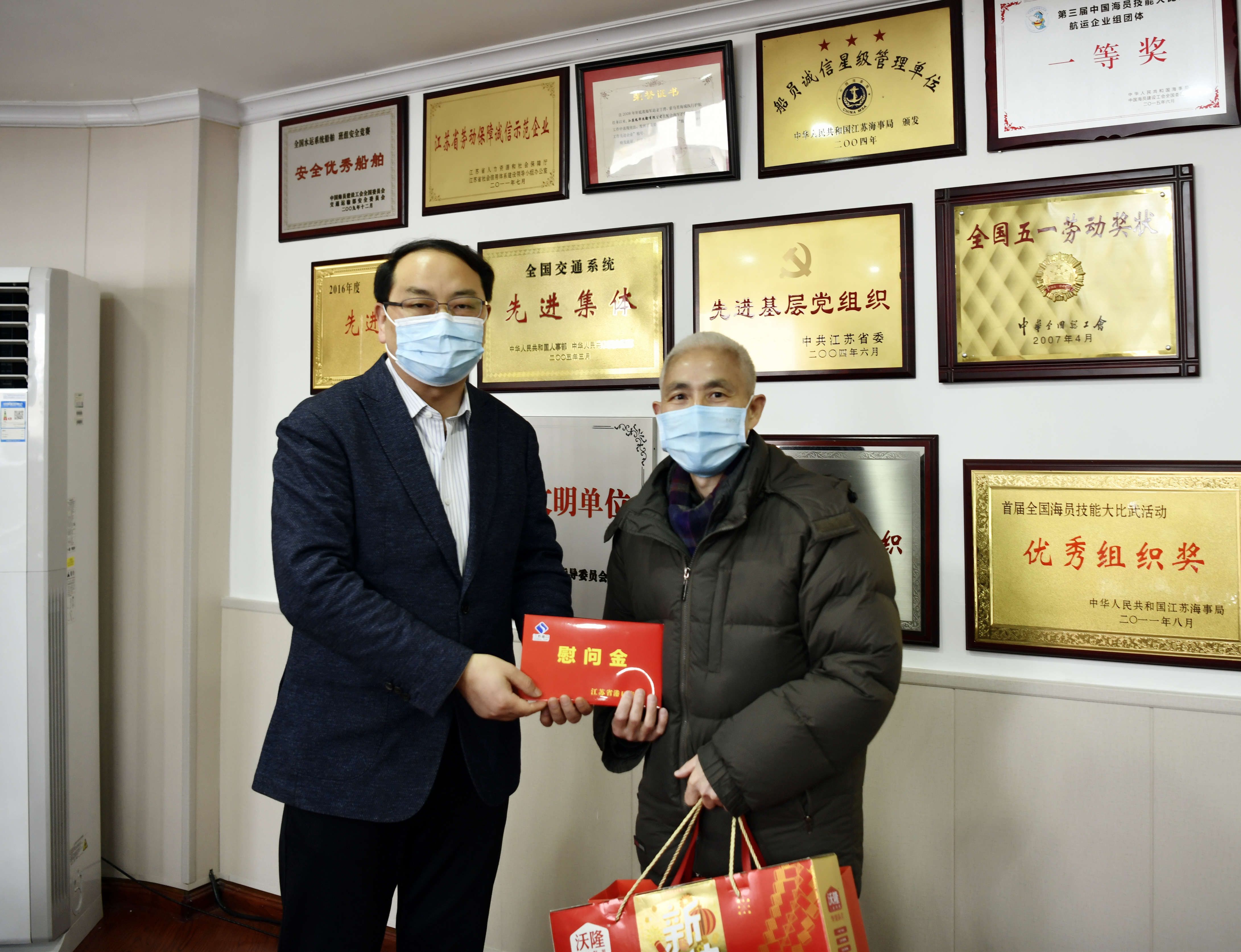 譚瑞兵一行還專門對公司遠洋船員和困難職工進行慰問,與他們親切交談,仔細詢問工作生活情況和身體狀況,感謝他們奮戰(zhàn)一線、為公司和集團創(chuàng)造了輝煌業(yè)績,鼓勵患病員工積極面對生活。譚瑞兵強調(diào),公司要始終把困難職工放在心上,要把對困難職工的幫扶落到實處,多方面為職工提供生活上的幫助;同時要多關(guān)心遠洋船員疫情期間船上的工作生活,特別要多給予船員心理上的關(guān)心和關(guān)愛。
