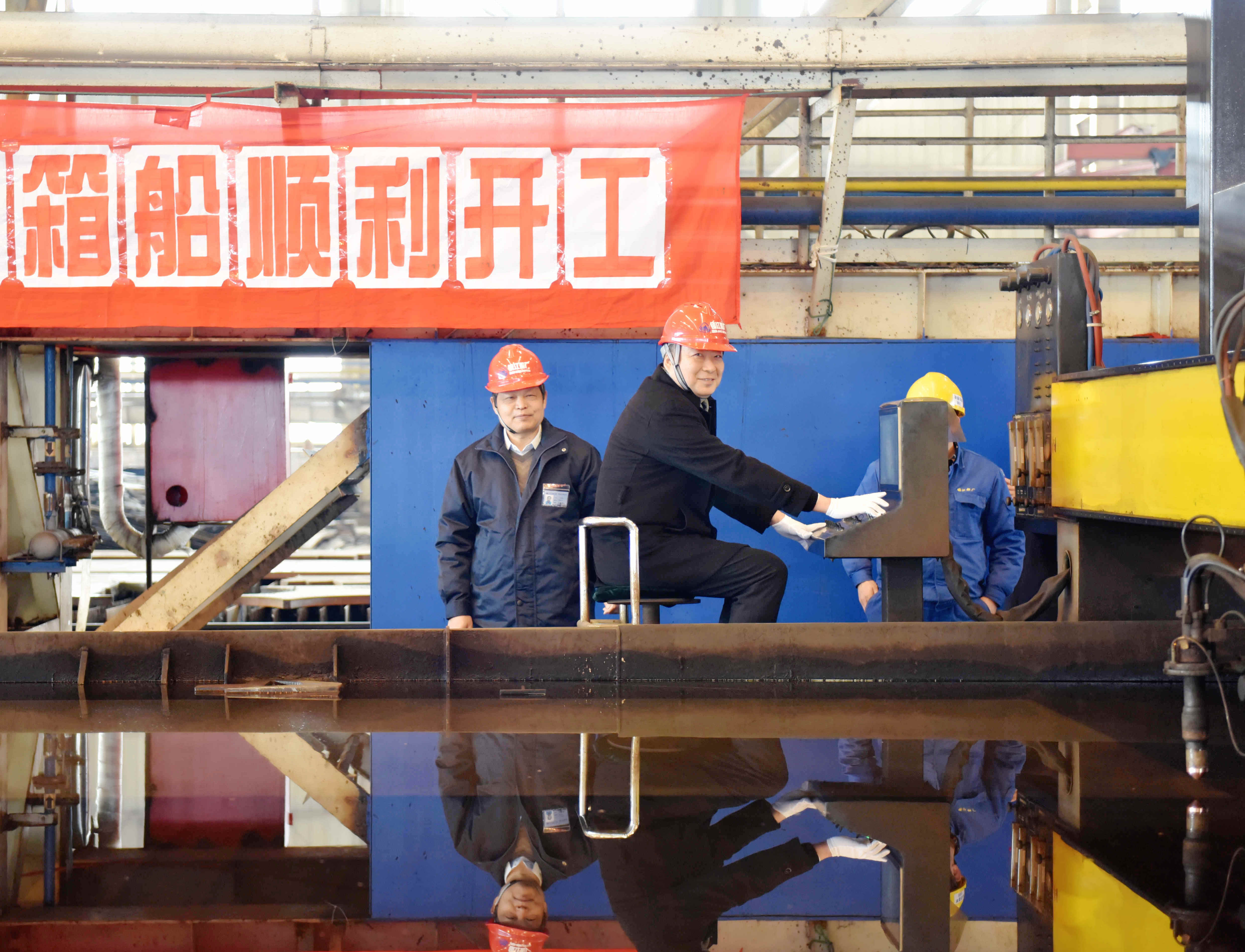 春寒料峭東風至,萬象更新陽氣生。元宵節(jié)剛過,2月16日,江蘇遠洋運輸有限公司首艘“蘇南120TEU純電池集裝箱船”開工儀式在鎮(zhèn)江船廠隆重舉行,該船是全省首艘內(nèi)河純電集裝箱船。江蘇省交通運輸廳運輸管理局局長宋國森,省交通運輸綜合行政執(zhí)法監(jiān)督局副局長董志海,省交通運輸綜合行政執(zhí)法監(jiān)督局水上局三級調(diào)研員聶柱中,省港口集團有限公司黨委委員、副總經(jīng)理譚瑞兵,鎮(zhèn)江市交通運輸綜合行政執(zhí)法支隊支隊長趙永富,南京市交通運輸綜合行政執(zhí)法監(jiān)督局五支隊支隊長閆冰,江蘇遠洋黨委書記、董事長晁陽等領(lǐng)導應(yīng)邀出席,共同見證這一重要時刻。