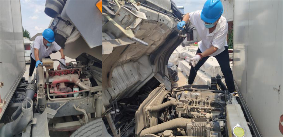 出車前安全員檢查機(jī)油、水箱存量等各項(xiàng)車輛安全指標(biāo),車用消防用品配備情況。