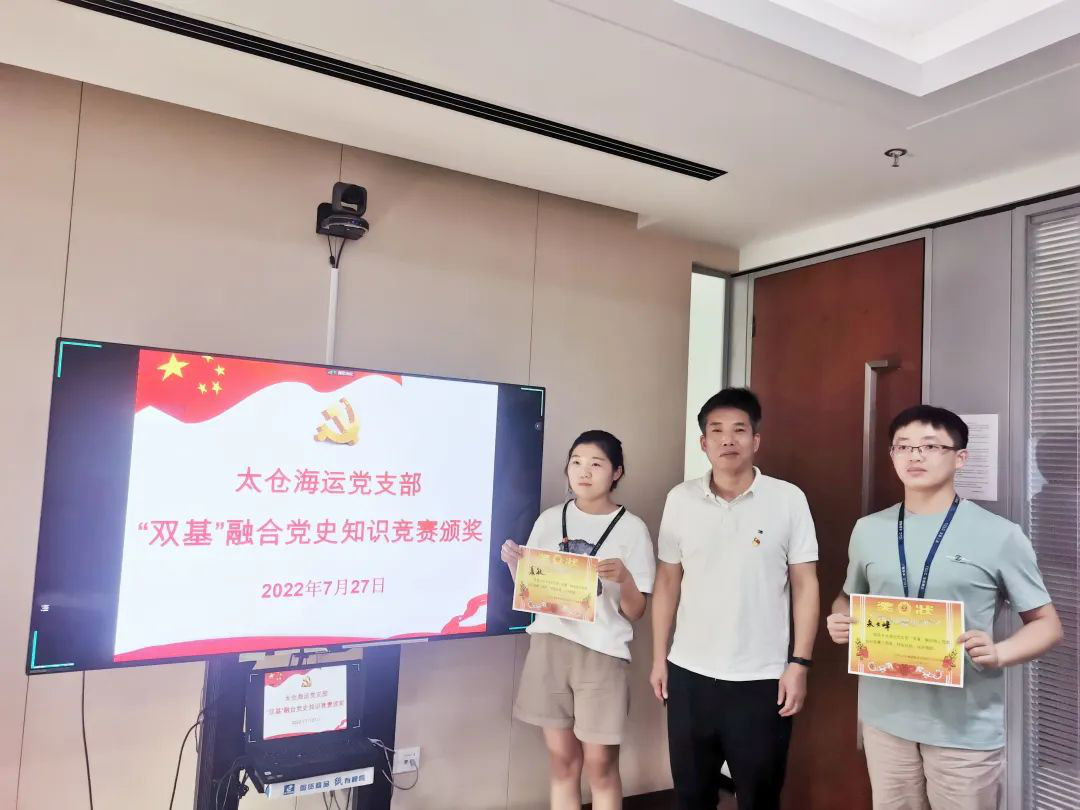 7月27日,太倉海運黨支部組織開展的“雙基”融合黨史知識競賽結(jié)果揭曉并為獲獎?wù)哳C發(fā)獎項,10位選手以優(yōu)異成績獲得一、二、三等獎。