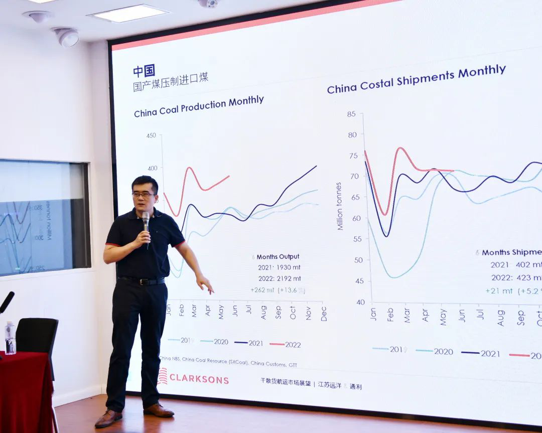 會(huì)前,江蘇省綜合交通運(yùn)輸學(xué)會(huì)港航分會(huì)航運(yùn)專業(yè)委員會(huì)特邀克拉克森知名航運(yùn)分析師李成山在江蘇遠(yuǎn)洋講授《干散貨航運(yùn)市場(chǎng)展望》專題講座,從宏觀、需求、供給、市場(chǎng)四方面對(duì)干散貨航運(yùn)市場(chǎng)進(jìn)行現(xiàn)狀分析和未來(lái)研判,并從鋼鐵、煤炭、鋁礬土、糧食等為代表的干散貨貿(mào)易海運(yùn)需求供給等方面著手,分析了近年來(lái)的干散貨海運(yùn)市場(chǎng)、全球船隊(duì)情況及未來(lái)干散貨航運(yùn)市場(chǎng)發(fā)展趨勢(shì)。