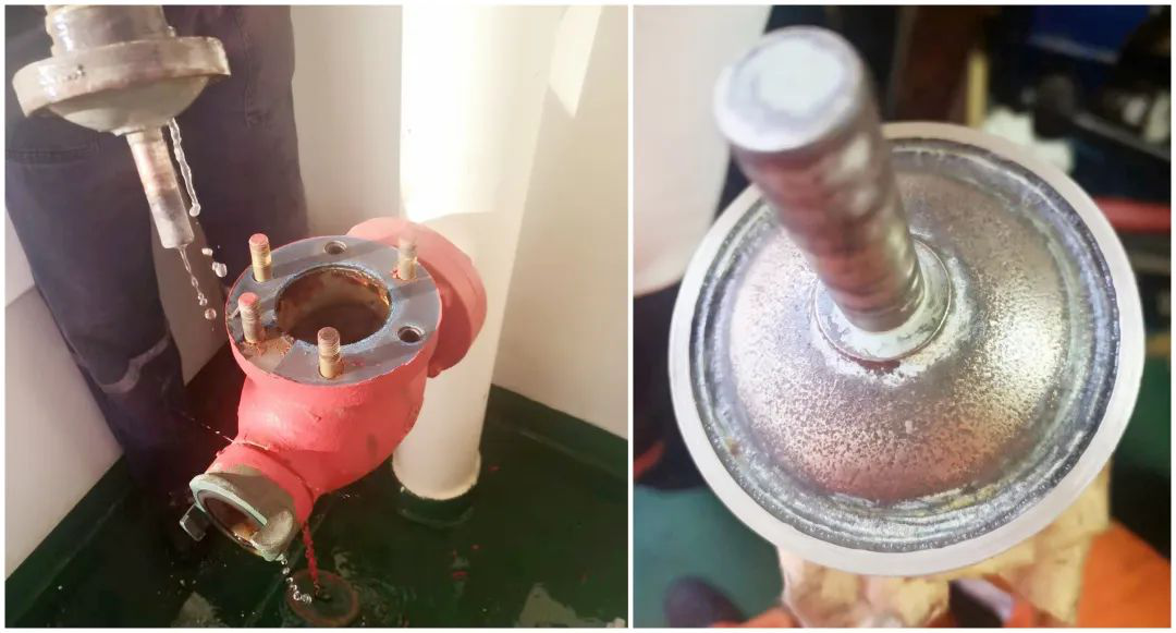 在“江遠(yuǎn)廣州”輪上,好幾個(gè)消防栓漏水,三副懷疑消防栓的閥芯結(jié)了垢,打算拆開(kāi)消防栓,給閥芯清潔清潔。他想象中的可能情況是閥芯的兩個(gè)接觸面上生了海蠣子或者附著了什么堅(jiān)硬的東西,導(dǎo)致閥芯關(guān)不嚴(yán)漏水。只要清除掉這些臟東西,消防栓就能完好如初。