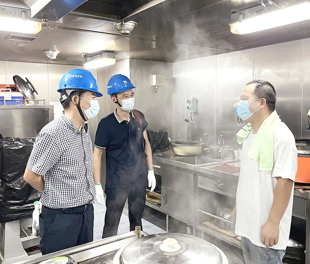 太倉(cāng)海運(yùn)專(zhuān)門(mén)成立船舶慰問(wèn)組,深入“太倉(cāng)瀘州”輪機(jī)艙、駕駛室和廚房等場(chǎng)所,詳細(xì)詢(xún)問(wèn)船員們的工作、生活情況,感謝船員們?cè)诟邷仄陂g堅(jiān)守崗位,并叮囑大家合理安排工作時(shí)間,注意做好防暑降溫和防疫措施,抓好安全生產(chǎn)工作,確保自身安全。隨后,慰問(wèn)組認(rèn)真聽(tīng)取了“太倉(cāng)瀘州”輪塢修情況匯報(bào),并重點(diǎn)檢查船舶安全生產(chǎn)、疫情防控和班組建設(shè)等工作落實(shí)情況。