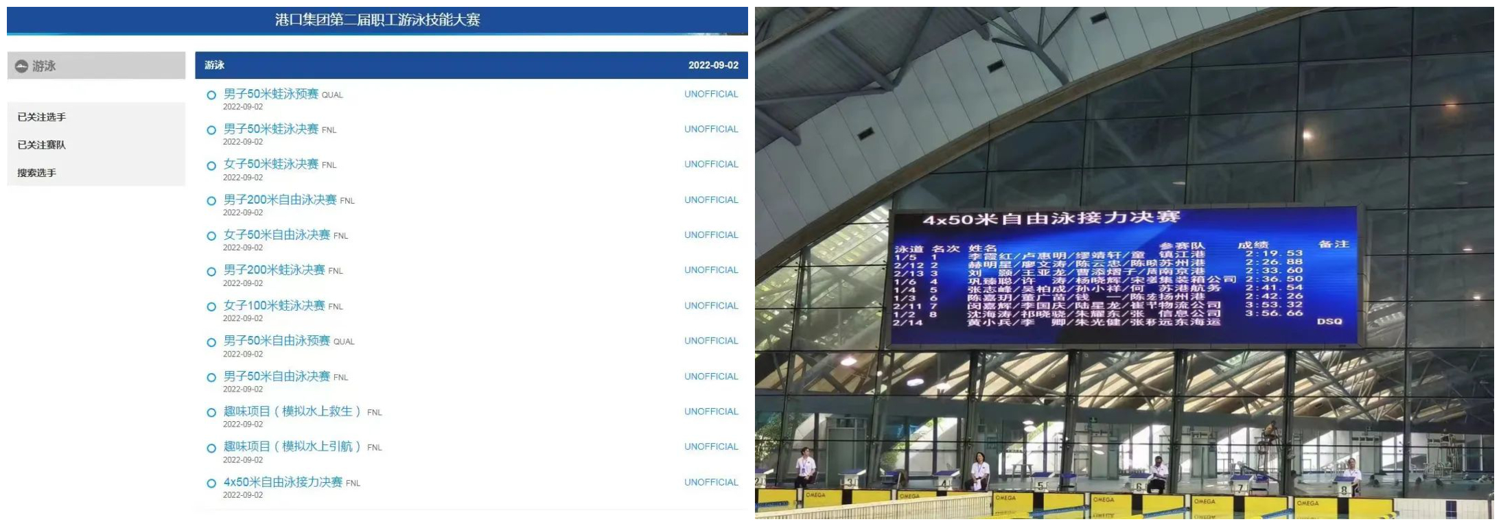 本次職工游泳技能大賽共設(shè)7個個人項目,3個團體項目。來自集團總部和所屬企業(yè)的12支代表隊近100名運動員參與角逐。此次技能競賽是江蘇省港口集團所屬各企業(yè)員工同場競技、交流感情、增進友誼的一次盛會。比賽場面氣氛熱烈,賽事安排井然有序。