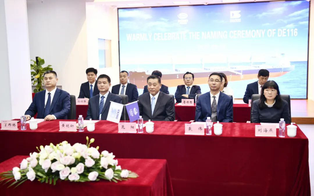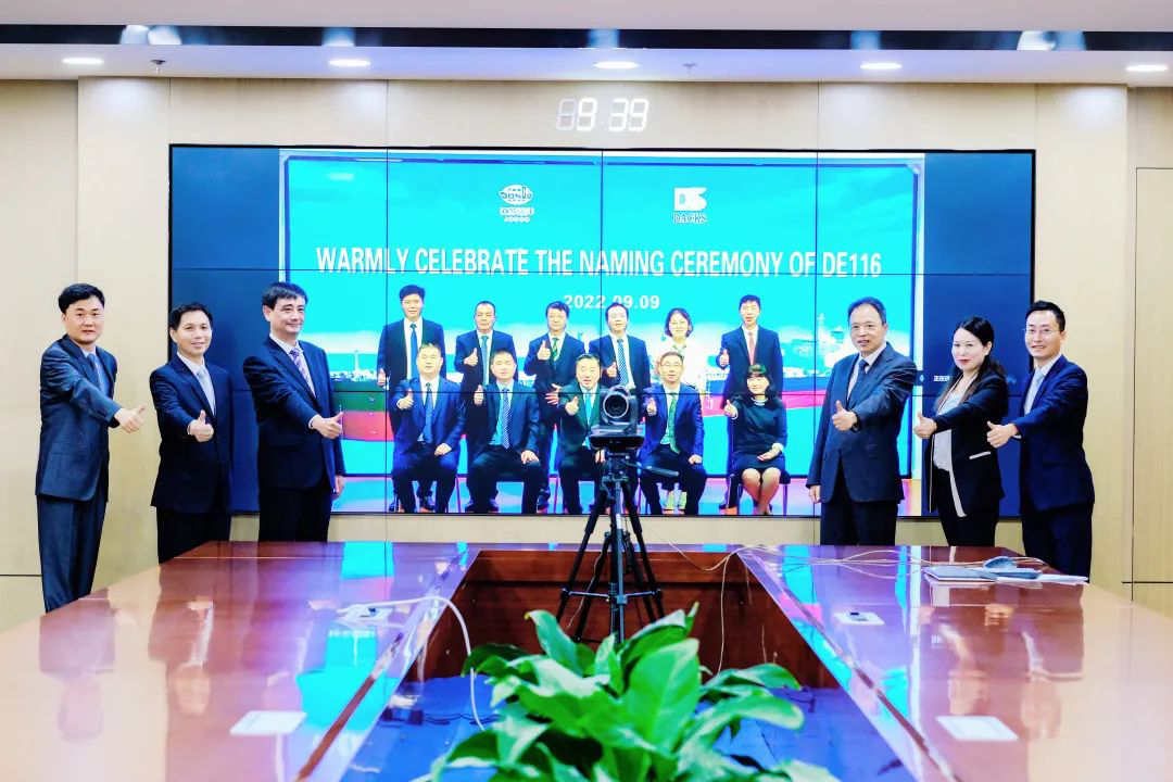 江蘇遠(yuǎn)洋黨委書記、董事長(zhǎng)晁陽(yáng),總經(jīng)理、黨委副書記戴偉,副總經(jīng)理黃明軒、副總經(jīng)理劉海燕,紀(jì)委書記丁邦林在江蘇遠(yuǎn)洋分會(huì)場(chǎng)視頻參加儀式。大連中遠(yuǎn)海運(yùn)川崎總經(jīng)理許維明,黨委書記、副總經(jīng)理莫中華在主會(huì)場(chǎng)出席儀式。