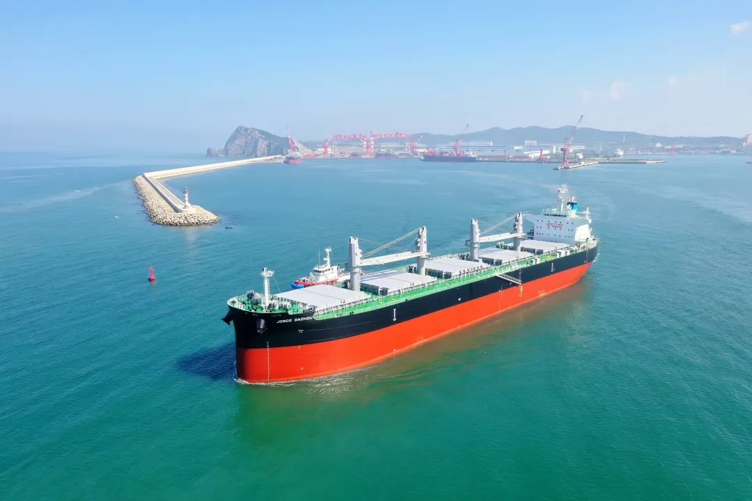“江遠(yuǎn)達(dá)州”輪的順利交付,標(biāo)志著江蘇遠(yuǎn)洋在大連中遠(yuǎn)海運(yùn)川崎船舶工程有限公司投資建造的兩艘6.4萬(wàn)噸超靈便型散貨船項(xiàng)目圓滿完成。