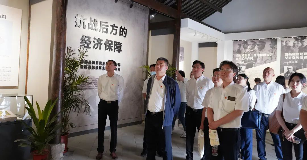 伴隨著基地工作人員的解說,大家先后參觀了溧高縣委縣政府、革命烈士紀念碑、溧高縣紡織廠等13處場館。溧高縣抗日民主政府大會堂原址位于進村口,場館呈現(xiàn)了抗戰(zhàn)時期的會議場景。在廉政教育館中,大家在陳毅同志《關(guān)于反腐倡廉的重要講話前》和粟裕同志《在財經(jīng)經(jīng)濟工作中提倡艱苦奮斗工作作風(fēng)》的兩塊展板前駐足,現(xiàn)場接受以“全面從嚴治黨”為主題的廉政警示教育。