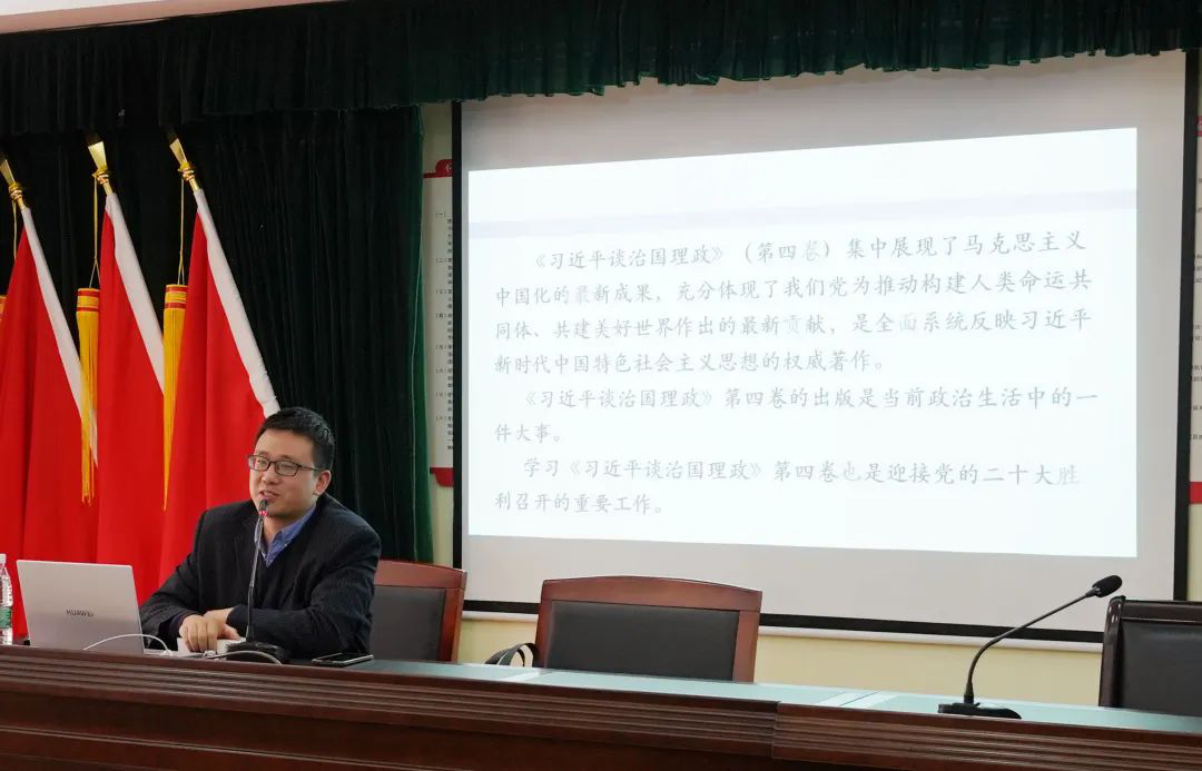 會上,南京市委黨校教授王兵對《習(xí)近平談治國理政》第四卷的重大意義、基本定位和理論創(chuàng)新成果作全面闡釋,就堅持和發(fā)展中國特色社會主義,開啟全面建設(shè)社會主義現(xiàn)代化國家新征程,立足新發(fā)展階段、貫徹新發(fā)展理念、構(gòu)建新發(fā)展格局,以偉大自我革命引領(lǐng)偉大社會革命等專題內(nèi)容作深入講解。