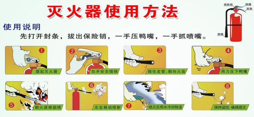 (2)距離火源的位置大約1.5-3米之間:保證滅火劑噴射到著火物質(zhì)上,可以有效滅火的位置。