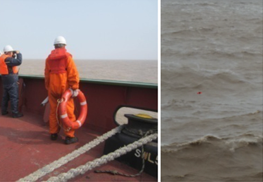 4月4日上午7時(shí)48分,浙海517輪上的我司船員首先接到鹽城海事指揮中心的救援通知:“象嶼藍(lán)海”于測(cè)風(fēng)塔位置沉沒(méi),需要緊急救援。接到通知后,公司外派船長(zhǎng)王幼南迅速按照指示啟動(dòng)營(yíng)救落水人員應(yīng)急預(yù)案;8時(shí)30分,浙海520輪上的我司船員也接到救援通知,船長(zhǎng)江文軍迅速組織船員,也加入救援行列。兩艘船舶全體船員根據(jù)應(yīng)急預(yù)案各就各位,迅速備妥可能需要的救生設(shè)備,現(xiàn)場(chǎng)救助小組在主甲板集結(jié)待命。