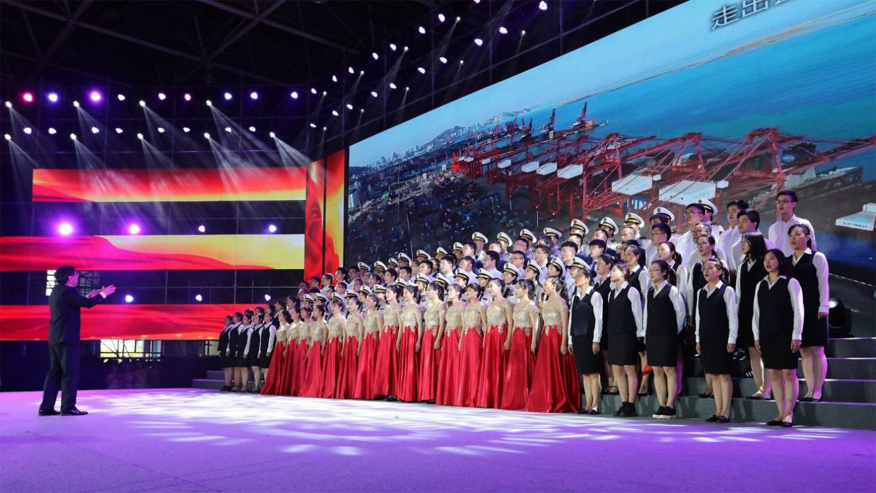 公司代表江蘇省港口集團(tuán)派出了30幾位青年員工,參演了《國資力量》大合唱節(jié)目。他們統(tǒng)一穿著代表遠(yuǎn)洋船員的白色海員服,頭戴海員帽,個(gè)個(gè)精神抖擻、志氣昂揚(yáng),展現(xiàn)了江蘇遠(yuǎn)洋新一代青年員工奮發(fā)向上的精神風(fēng)貌。