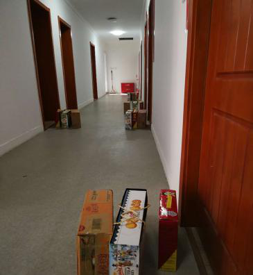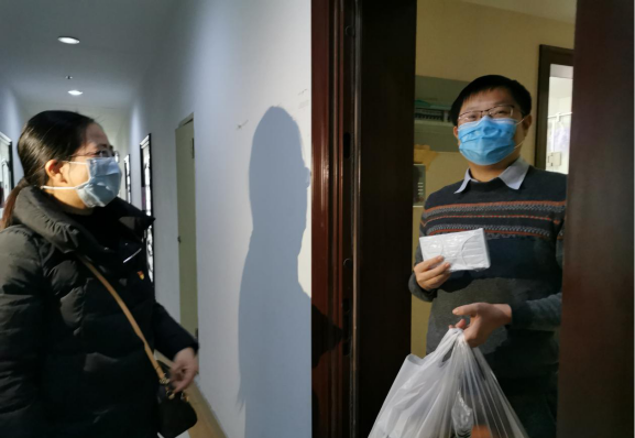 為宿舍職工送上速凍水餃、雞蛋、水果和口罩等物資。每一聲問候,都包含濃濃的真情。