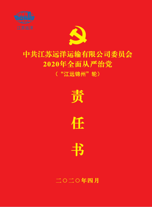 紀(jì)檢監(jiān)察室負(fù)責(zé)人潘小蕾傳達(dá)了江蘇遠(yuǎn)洋運(yùn)輸有限公司2020年全面從嚴(yán)治黨工作會議精神。船長竺社奎代表“江遠(yuǎn)錦州”輪簽訂2020年全面從嚴(yán)治黨責(zé)任書。