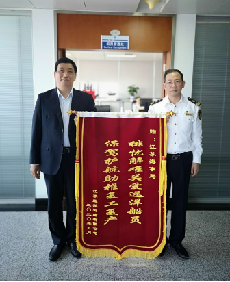 5月19日上午,江蘇遠(yuǎn)洋副總經(jīng)理瞿名澤帶領(lǐng)船員公司工作人員赴江蘇海事局,對(duì)江蘇海事局關(guān)心關(guān)愛(ài)船員,積極協(xié)調(diào)船員換班,推動(dòng)企業(yè)復(fù)工復(fù)產(chǎn)表示感謝,并向海事局船員處贈(zèng)送了錦旗和感謝信。