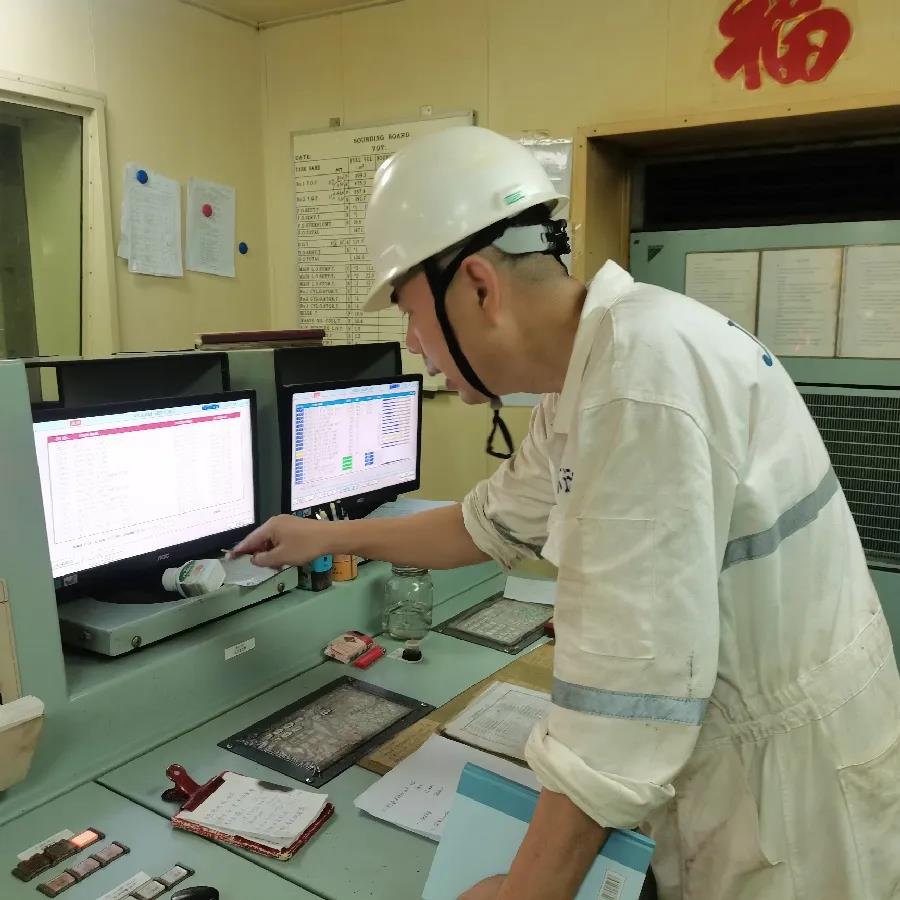 輪機(jī)長施國強(qiáng)帶領(lǐng)輪機(jī)員在機(jī)艙內(nèi)進(jìn)行細(xì)致的檢查,確保主機(jī)、輔機(jī)、舵機(jī)等機(jī)械設(shè)備處于良好工況。