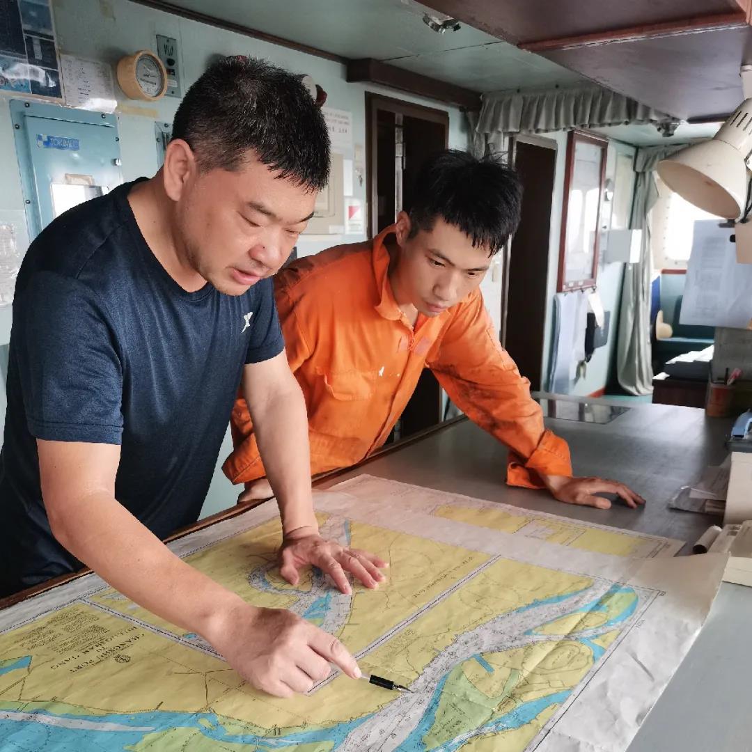 陳船長和駕駛員及時(shí)收集最新的長江航行通告和相關(guān)信息,了解航道中浮筒位置和航道水深情況,對照航海圖書資料和航行計(jì)劃進(jìn)行研究,根據(jù)最新信息將海圖改正至最新,并制訂出最佳的航行和操作方案。