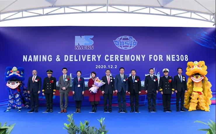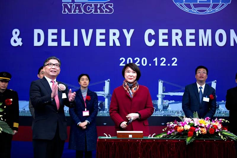 儀式上,中遠(yuǎn)海運(yùn)重工副總經(jīng)理、NACKS中方總經(jīng)理陳弓,江蘇省港口集團(tuán)總經(jīng)理、黨委副書記關(guān)永健分別致辭。儀式分別為新船命名、砍纜擲香檳。江蘇省港口集團(tuán)、南通中遠(yuǎn)海運(yùn)川崎、江蘇遠(yuǎn)洋、工銀租賃、NK船級(jí)社等相關(guān)單位領(lǐng)導(dǎo)和嘉賓蒞臨儀式現(xiàn)場(chǎng),共同見證新船命名與交付。
