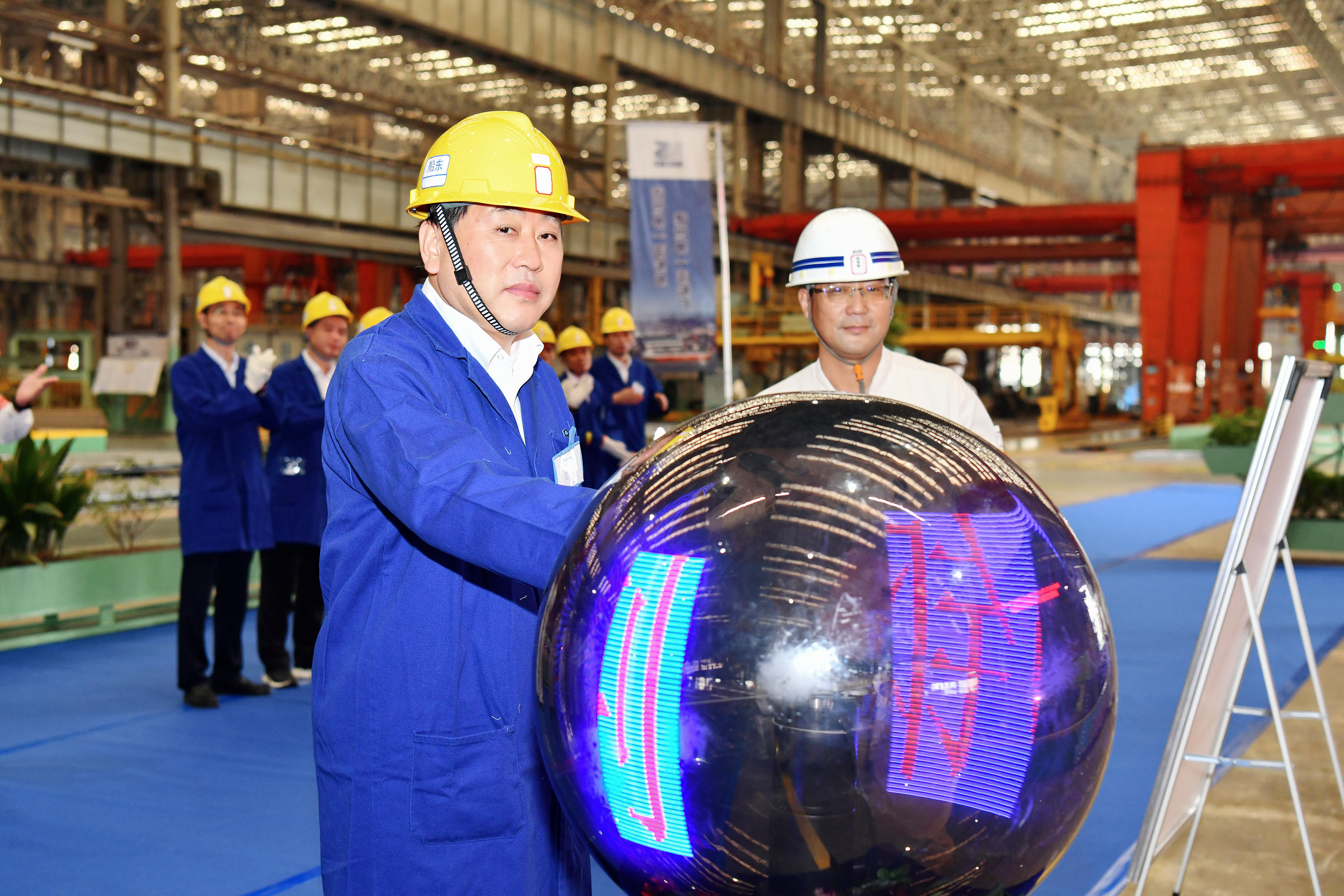 在簡潔莊重的儀式現(xiàn)場,晁陽莊重觸摸“幸運”球后,切割機精準點火。隨著一道弧光閃過,江蘇遠洋首艘6.4萬噸超靈便型散貨船正式開工建造。