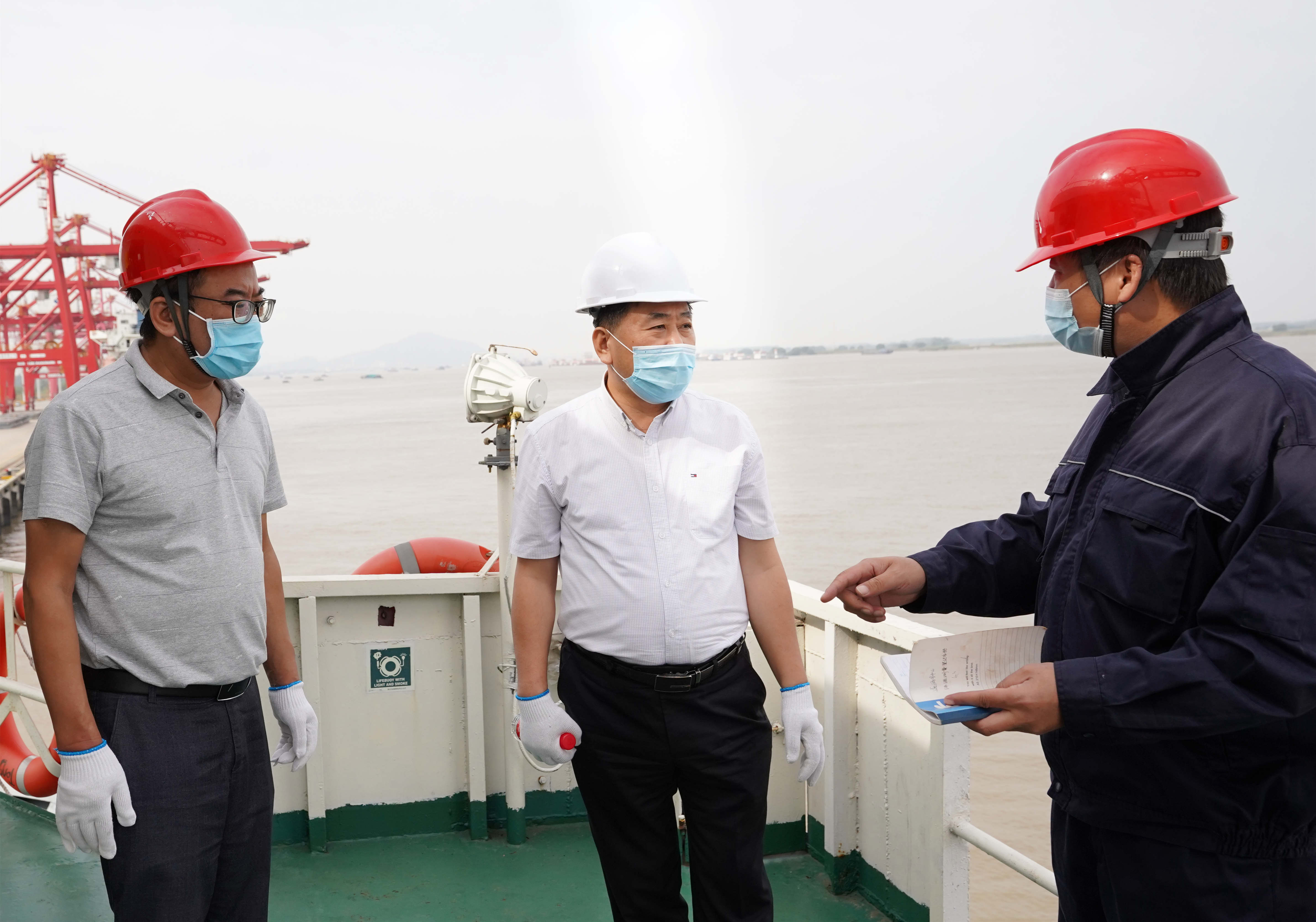 9月25日星期六,晁陽來到停靠在南京龍?zhí)陡鄣?ldquo;通海鐘山”輪,實地檢查安全生產(chǎn)和疫情防控各項措施落實情況,詳細了解長江航行和船期等情況。在檢查過程中,晁陽與船員深入談心交流,了解船員所思所想,并親切慰問值班船員。