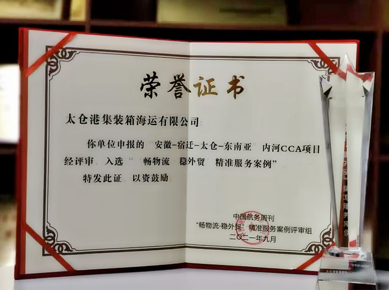 公司“安徽-宿遷-太倉(cāng)-東南亞”內(nèi)河CCA項(xiàng)目入選“‘暢物流·穩(wěn)外貿(mào)’精準(zhǔn)服務(wù)案例”