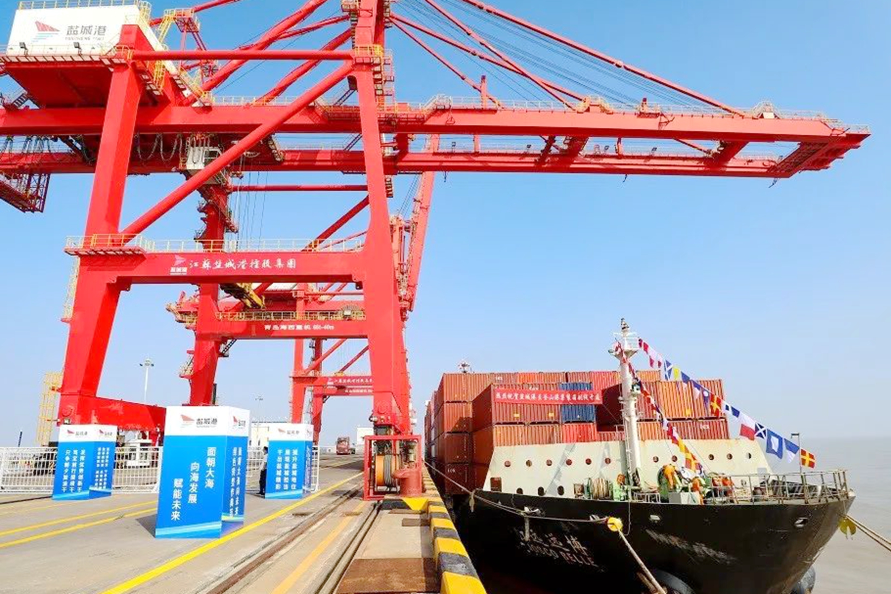 攜手同心,向海發(fā)展!江蘇省港口集團聯(lián)合鹽城港控股集團開辟鹽城港至韓國釜山港國際直達集裝箱班輪航線