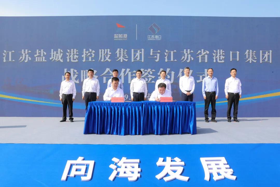 為全力落實“一帶一路”倡議、長三角一體化發(fā)展等國家戰(zhàn)略,發(fā)展江海河、鐵公水聯(lián)運業(yè)務,推動區(qū)域港口一體化和地區(qū)經濟高質量發(fā)展,服務構建新發(fā)展格局,在此次鹽城港至韓國釜山港國際直達集裝箱班輪航線首航儀式上,江蘇省港口集團和江蘇鹽城港控股集團簽署戰(zhàn)略合作協(xié)議,全面深化合作,建立面向未來的長期戰(zhàn)略合作伙伴關系。