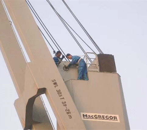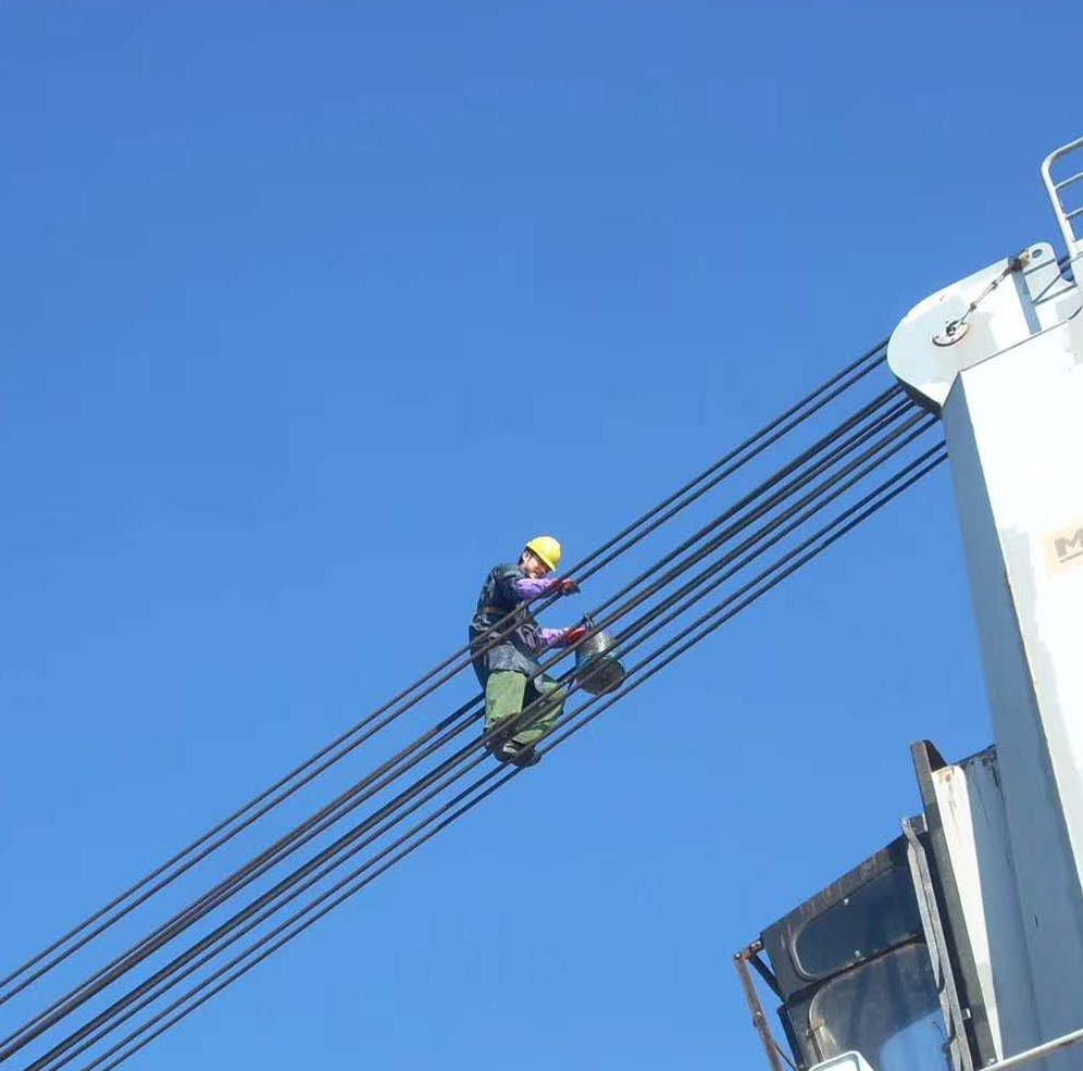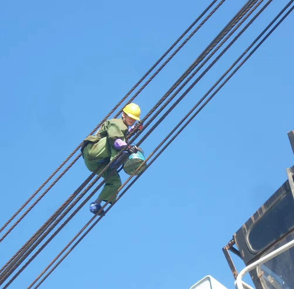 我的海船我的家,圖為船員們?cè)诤I细咧凶鳂I(yè),維護(hù)保養(yǎng)我們的“家”。